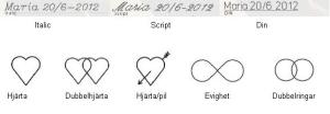 ex: Patrik "dubbelhjärta" Maria 31/12-09