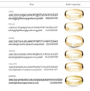 Det är gravyren som fulländar ringen. Därför är valet av gravyr lika viktigt som valet av ring. Välj mellan flera olika stilar, dessutom kan ni komplettera med en symbol för er lycka.