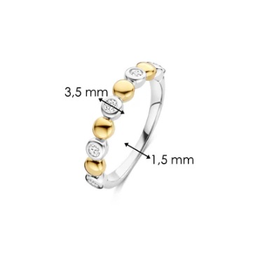 Fira kontrasternas konst med denna TI SENTO förgyllda silverring, en modern klassiker med en strålande twist. Tillverkad av premium 925 sterlingsilver och pläterad med lysande platina för en varaktig, briljant finish, har denna ring en slående rad av vita kubiska zirkoniastenar infattade i bezel, varvade med polerade gult förgyllda kulor. Samspelet mellan varma guldtoner och glittrande stenar skapar en raffinerad men ändå modern design, perfekt för att lyfta vardagliga looks eller ge en touch av glamour till speciella tillfällen.