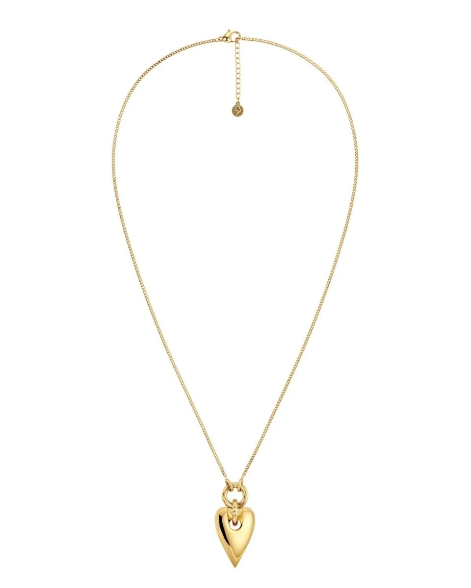 Ett stiliserat hjärta spelar huvudrollen i serien Amore. En kärleksyttring med attityd där fästet skrider genom hjärtat för en modern look och vacker rörelse. Här i ett längre halsband i 14K guldplätering.
