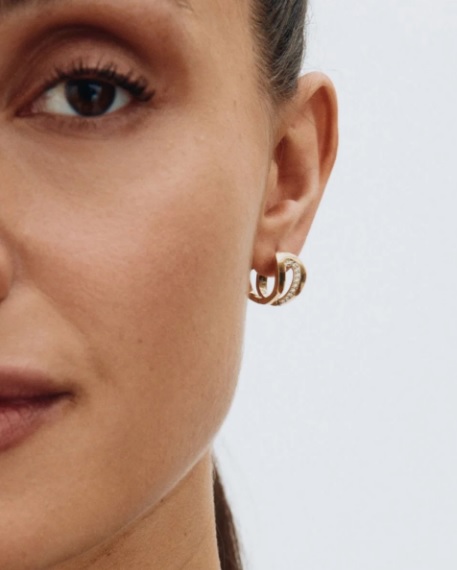Plié sätter fokus på öronen, med nätta men uttrycksfulla och spännande former inspirerade av den klassiska balettpositionen. Här i eleganta hoops i 14K guldplätering. Den vackert böjda, speglade designen kantad av glittrande stenar, är lika fin framifrån som bakifrån. Matcha gärna med andra favoritörhängen och skapa en alldeles egen, unik look.