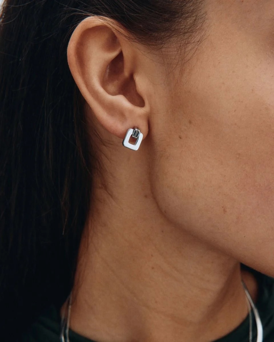 Den mjukt formade kvadraten i vackra vardagsserien Plaza är din bästa vän för stilren styling som sticker ut. De mindre studsen, här i blankt rostfritt stål, sitter så fint på örat