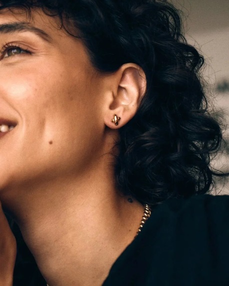 Alexa är en stark serie med ren och elegant skulptural design i delar som tar för sig, perfekta för layering och stacking både till vardag och fest. Här i coola små studs i 14K guldplätering som sitter fint på örat.