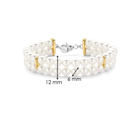 Gör ett uttalande med TI SENTOS förgyllda dubbelradiga pärlarmband, en fantastisk blandning av elegans och sofistikering. Tillverkat av premium 925 sterlingsilver har detta armband två rader av glänsande vita pärlor, accentuerade med detaljer i gult guld som ger en varm, lyxig glöd. Designen kompletteras med ett säkert och vackert utformat spänne som garanterar både stil och sinnesro. Dess tidlösa elegans och strålande charm gör det till den perfekta accessoaren för soliga dagar och ljumma kvällar, och passar enkelt med vardagliga outfits eller mer uppklädda tillställningar. Hypoallergeniskt och nickelfritt, detta armband erbjuder exceptionell komfort och kvalitet, vilket gör det till ett mångsidigt och uppskattat tillskott till din smyckessamling. Stentyp: Snäckpärla. Längd: 18cm