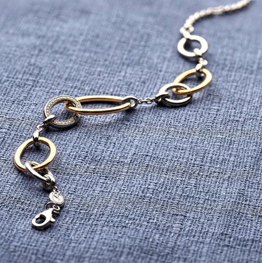 De sammanflätade cirklarna symboliserar gemenskap och enighet och skapar en lekfull Circle & Crossover-effekt. Tack vare det justerbara spännet kan armbandet enkelt skräddarsys för en bekväm passform. Bär det ensamt som en meningsfull detalj eller kombinera det med andra armband för en lager-på-lager-look.