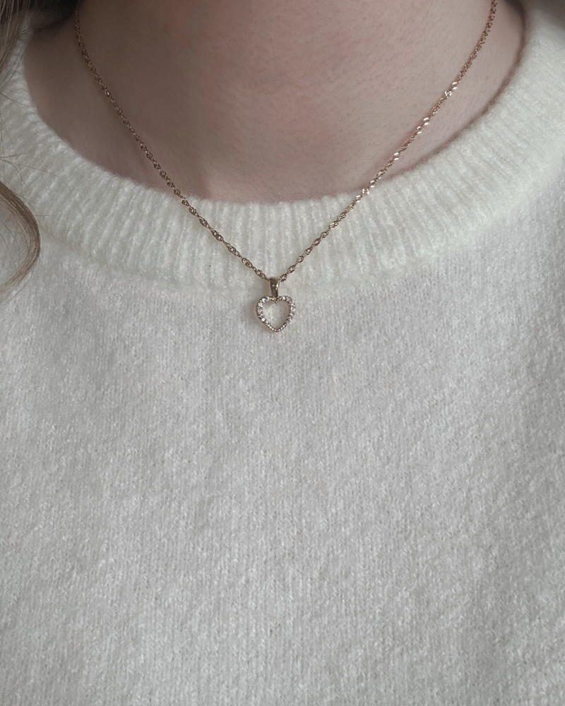 Cora halsband är ett elegant smycke av stål på en tunn länk med en hjärtformad berlock, dekorerad med gnistrande zirkoner. Halsbandet är designat för att passa både vardagliga som festliga tillfällen och kan enkelt kombineras med andra smycken för en personlig styling. Det högkvalitativa materialet ger både hållbarhet som komfort och tack vare sina allergivänliga egenskaper, kan även den mest känsliga bära detta halsband utan oro. Den vändbara berlocken har gnistrande kristaller på ena sidan och en ren, slät yta på den andra – perfekt för att enkelt skifta stil.