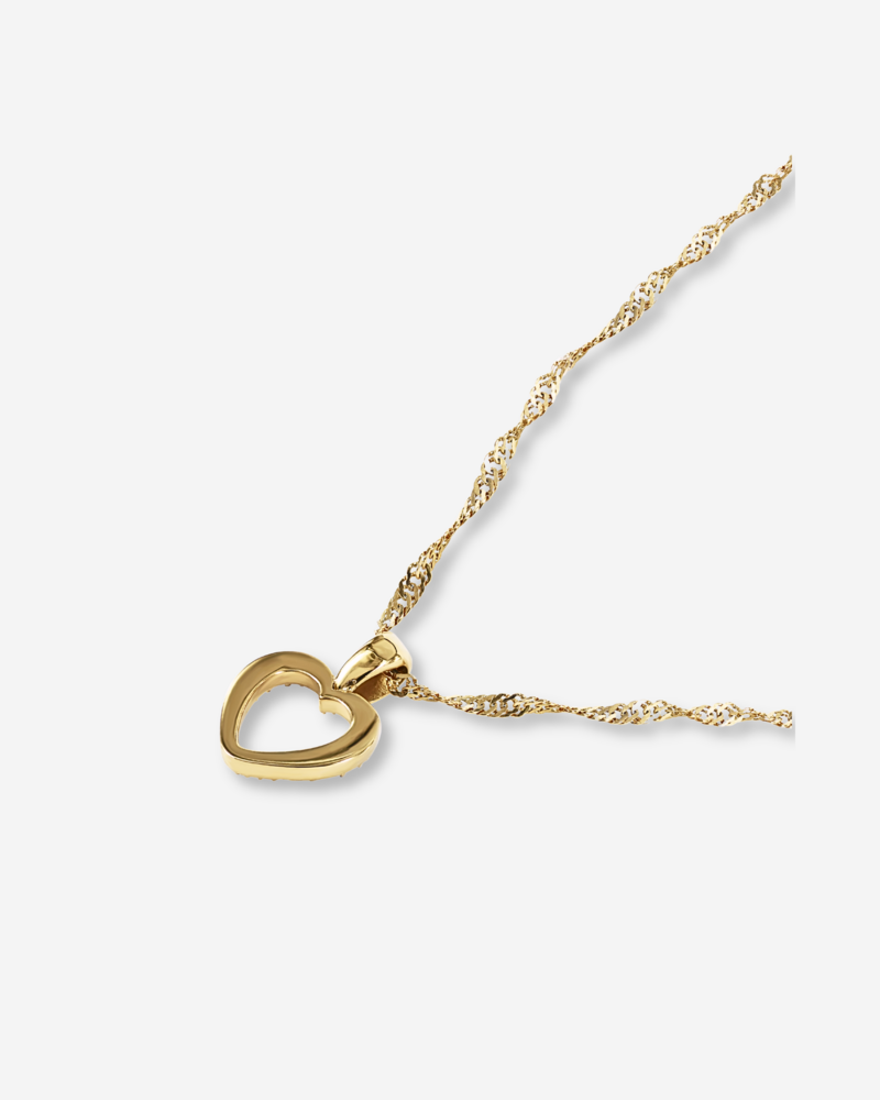 Cora halsband är ett elegant smycke av guldpläterat stål på en tunn länk med en hjärtformad berlock, dekorerad med gnistrande zirkoner. Halsbandet är designat för att passa både vardagliga som festliga tillfällen och kan enkelt kombineras med andra smycken för en personlig styling. Det högkvalitativa materialet ger både hållbarhet som komfort och tack vare sina allergivänliga egenskaper, kan även den mest känsliga bära detta halsband utan oro. Den vändbara berlocken har gnistrande kristaller på ena sidan och en ren, slät yta på den andra – perfekt för att enkelt skifta stil.