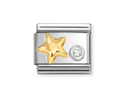 Original Nomination Composable Classic länk för Composable armband i rostfritt stål med guldbeläggning och en stjärnsymbol samt en enkel Cubic Zirconia i sterlingsilver.