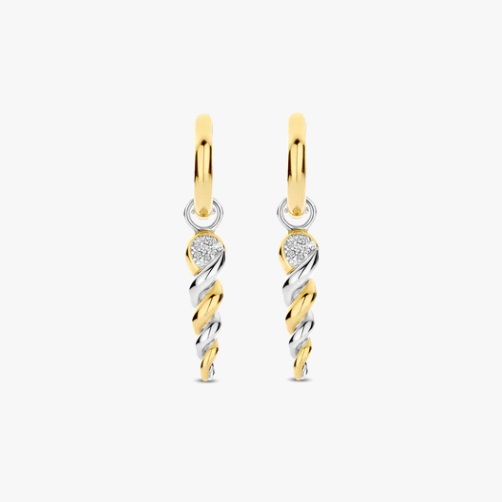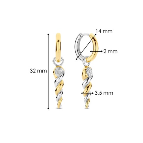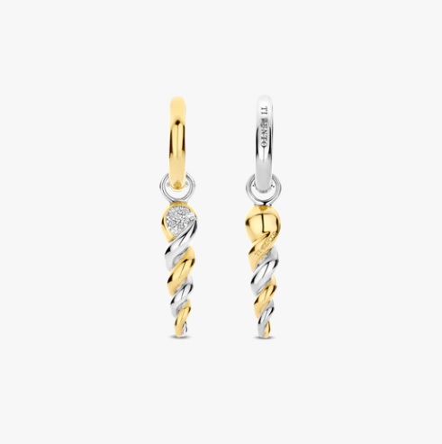 Dessa TI SENTO förgyllda vridna droppörhängen, är ett uttalande av flytande elegans och djärv kontrast. Tillverkade av premium 925 sterlingsilver, har dessa slående hängen en vriden spiraldesign som sömlöst blandar gult guldplätering med elegant sterlingsilver. En pavéinfattad kubisk zirkoniaaccent upptill ger en antydan av briljans och fångar ljuset i varje rörelse. Upphängda i eleganta förgyllda huggie hoops utstrålar dessa örhängen en enkel balans mellan modern glamour och skulptural konst. Deras dynamiska silhuett gör dem till den perfekta följeslagaren för både avslappnad styling och eleganta kvällslooker. Nickelfria och allergivänliga, de lovar lyxig komfort vid varje användning. En återspegling av djärv sofistikering och konstnärlig skönhet, som ger rörelse och glans till varje steg.