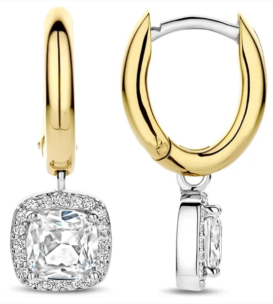 Upptäck strålande dualitet med dessa TI SENTO örhängen i förgyllt silver. Tillverkade av 925 sterlingsilver, fantasislipad vit kubisk zirkonia som svajar mjukt under loben. En fin gloria av pavéstenar, infattade i en cool platinapläterad bezel, intensifierar mittstenens lyster och ger en raffinerad textur när örhängena fångar ljuset. Styla paret ensamma för en enkel dag-till-kväll-polering, eller kombinera dem med fina studs för att skapa en personlig look. Nickelfria och allergivänliga, de ger varaktig glans och fjäderlätt komfort.