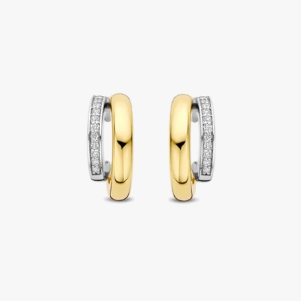 Omfamna skulptural kontrast med dessa TI SENTO örhängen i förgyllt silver. Tillverkade av 925 sterlingsilver, bildar varje örhänge en djärv, asymmetrisk look bestående av två sammankopplade ringar: en elegant och förgylld, den andra platinapläterad och pavébesatt med briljantslipade vita kubiska zirkoner. Den fina kombinationen skapar ett subtilt samspel mellan ljus, färg och textur. Kompakta men ändå iögonfallande, de erbjuder en raffinerad twist på klassiska örhängen. Nickelfria och allergivänliga, de säkerställer enkel elegans och komfort hela dagen för känsliga öron.