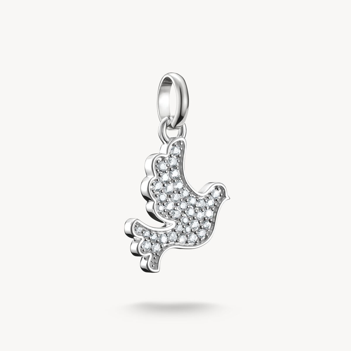 Bär denna duvformade berlock som en stark symbol för fred, optimism och hopp. Den är tillverkad av återvunnet 925 silver och är infattad med vit zirkonia pavé. Stenarnas gnistrande fyrverkerier framhäver duvans symbolik. Det gör också charm-hängsmycket till ett elegant smycke som ger en stilfull touch till din look. Kombinera det med andra hängsmycken för att passa ditt humör och din stil. Tack vare den fina öglan kan du bära charm-halsbandet flexibelt på ett armband eller halsband.