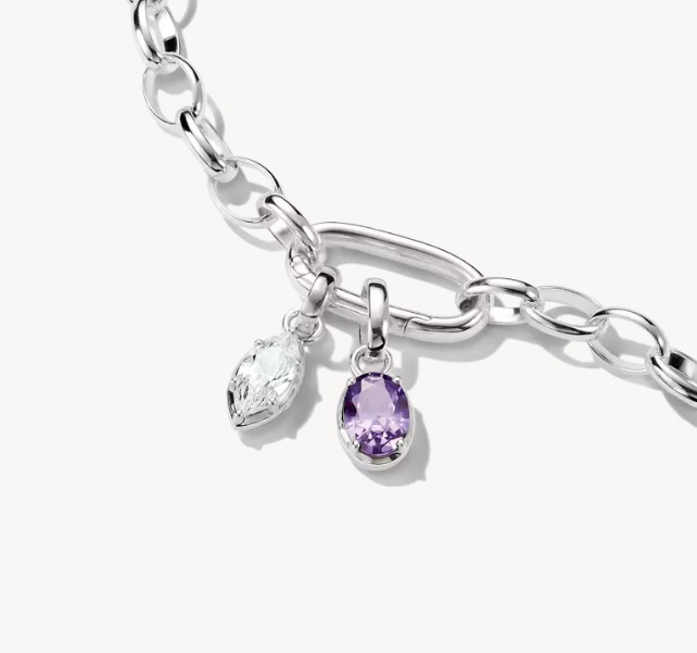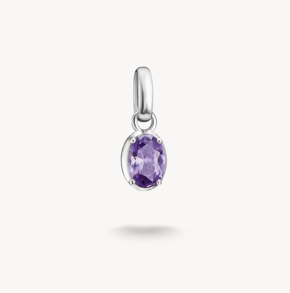 - Hjärtformat Birthstone-charm i 925 sterlingsilver med ametistfärgad zirkonia