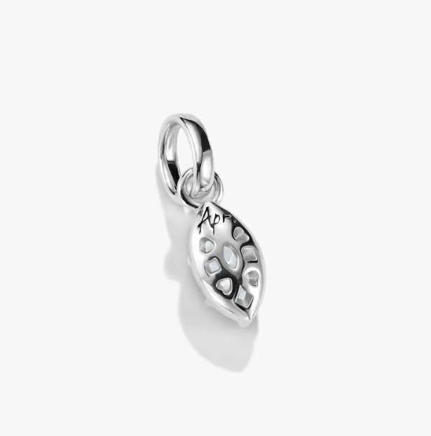 - Hjärtformat Birthstone-charm i 925 sterlingsilver med klar vit zirkonia