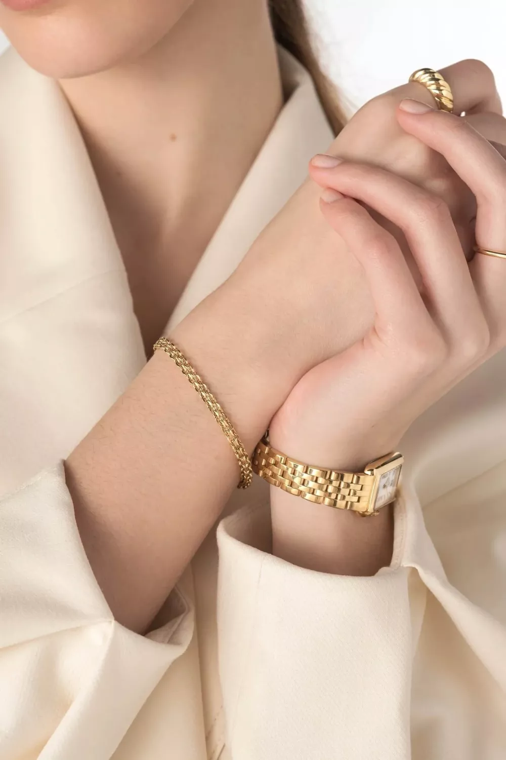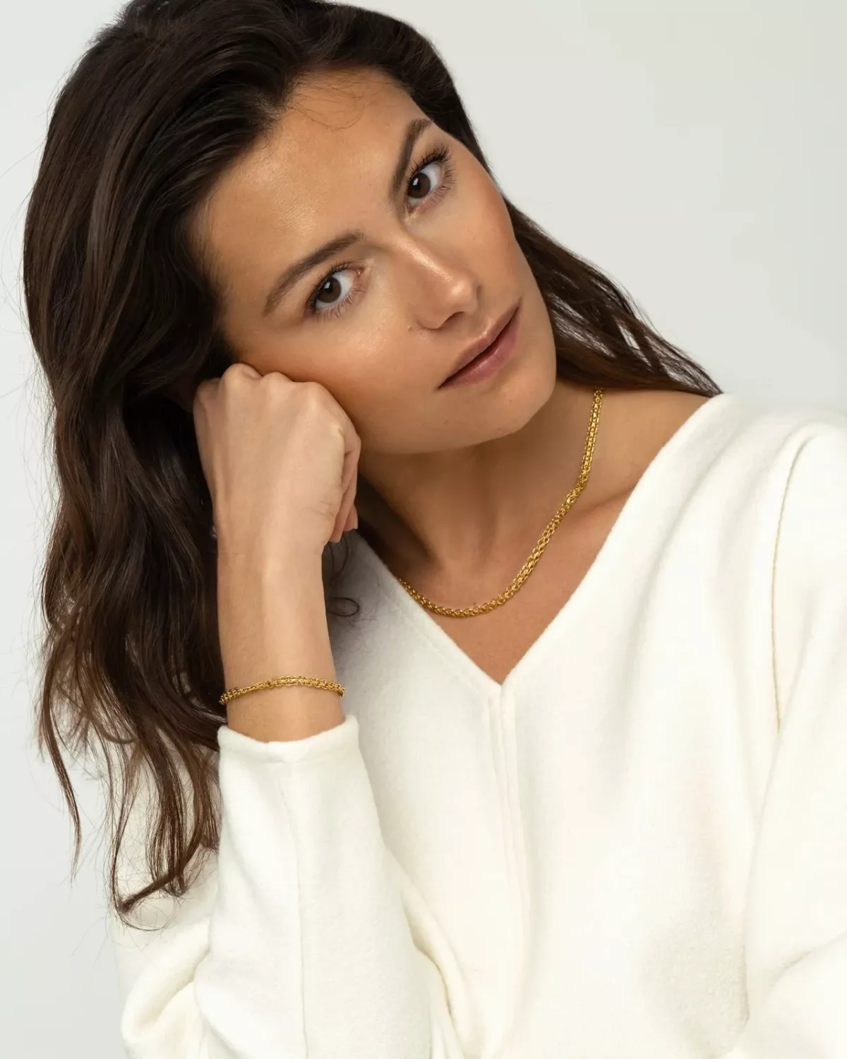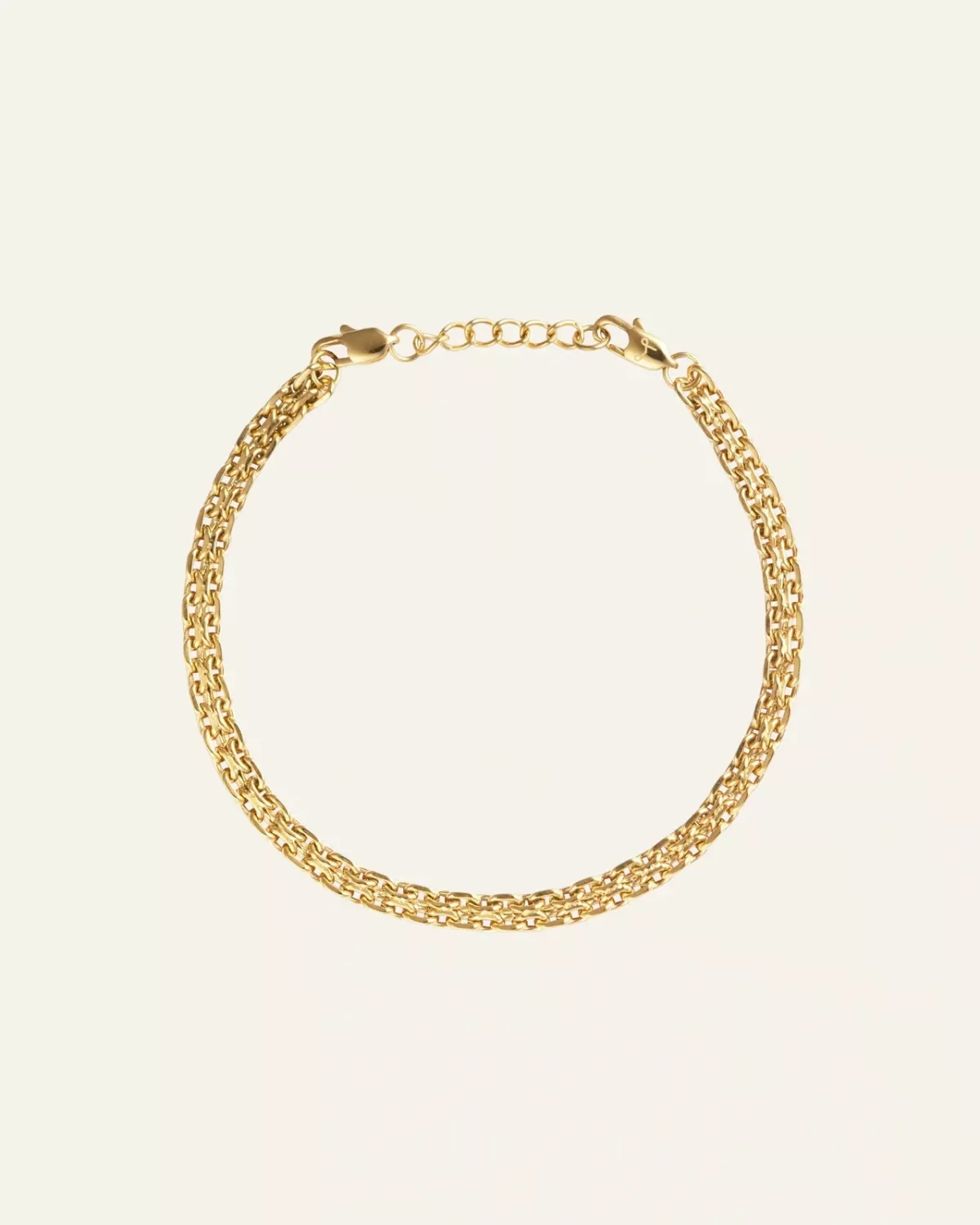 Det här armbandet är en tidlös klassiker. Det passar till allt och kan bäras av kvinnor i alla åldrar. Matcha tillsammans med Darling necklace eller bär ensamt. Armbandet är tillverkat i massivt rostfritt stål som sedan har en 18K guld PVD-beläggning vilket gör det mycket slitstarkt och dessutom vattentålig. Bada, duscha och träna i detta armband utan att oroa dig för att det ska tappa färg. Förlängningskedjan går att ta av om man önskar.