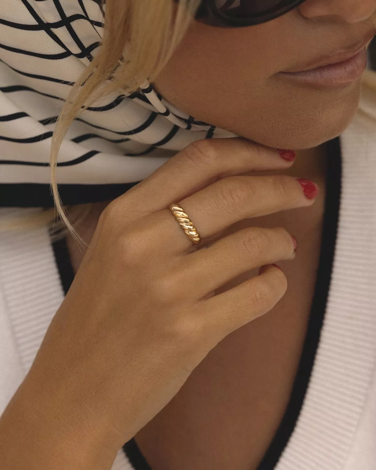 Elsa Ring är en stilren räfflad ring som gör sig perfekt tillsammans med Karolina Ring på samma finger – en kombination som utstrålar subtil elegans!