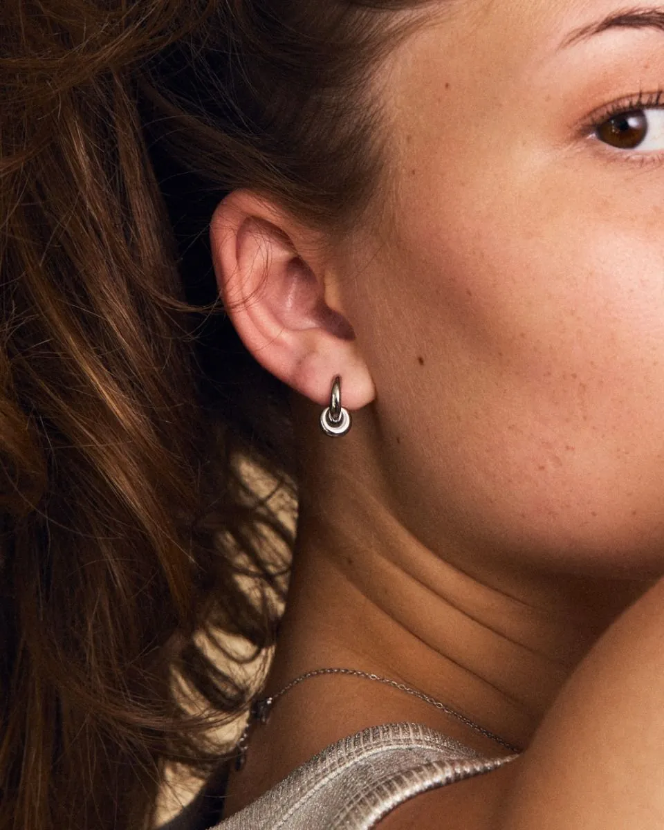 Serien Furo Orbit är elegant i sin form och enkelhet med sina doserade blanka ringar. Furo hoops tar för sig lite mer med sin hängande ring i ring och är örhängen du gärna bär alla dagar i veckan. Furo Orbit hoops ses här i blankt rostfritt stål.