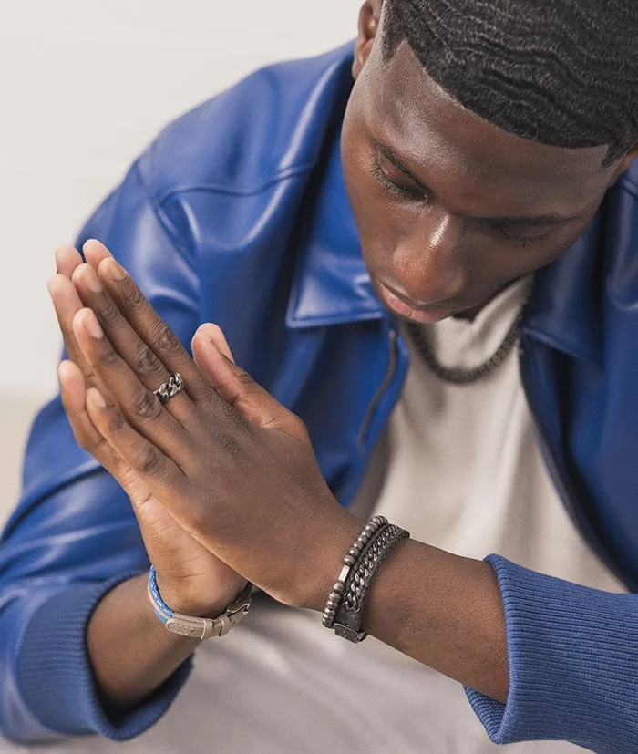 Flätat läderarmband av äkta italienskt läder, med lås och en dekorativ kedja som löper runt hela armbandet av Kirurgiskt Rostfritt Stål med en svart TiCN-plätering (Titanium Carbonitride). Det justerbara spännet ger en säker passform och gör armbandet enkelt att anpassas efter handleden. Armbandet är av matt finish.