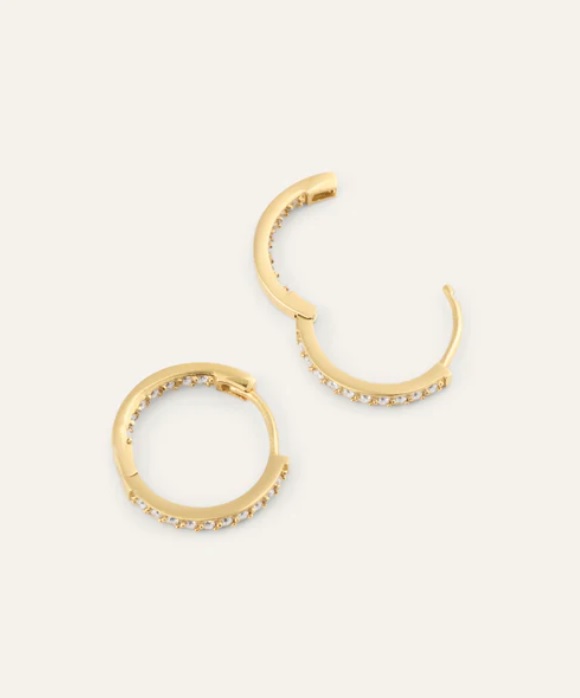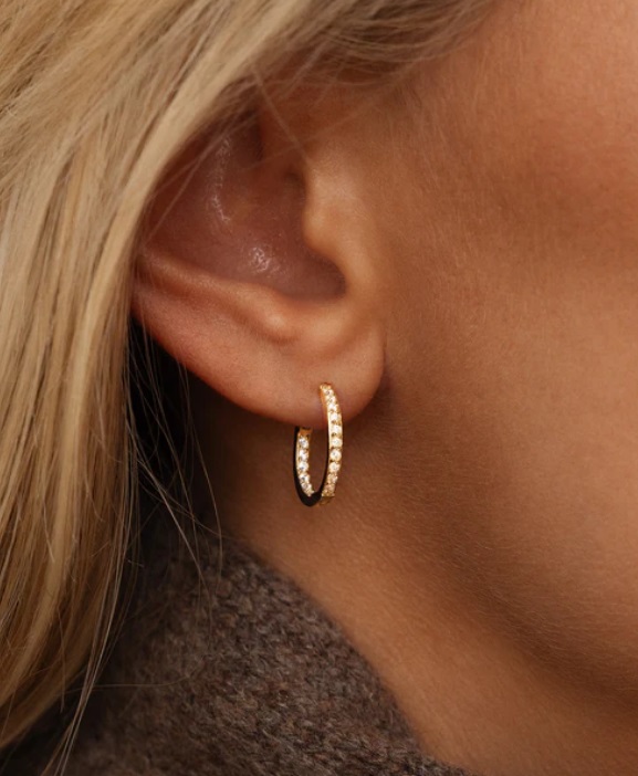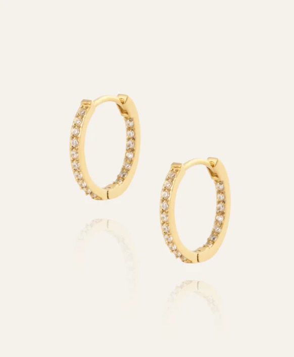 Sparkle Hoops glimmar mjukt i guldfärgad ton. De smala creolerna pryds av Cubic Zirconia som fångar ljuset vid varje rörelse. Lätta att bära, lätta att matcha – från vardag till kväll.