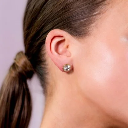 Den djärva mittstenen i kristall sitter i en bädd av fint gjutet guld och har en push-back stängning. Kristaller: Swarovski Färg: Guld Material: Mässing