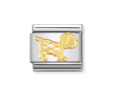 Charm för det ursprungliga Composable Classic -armbandet med en Sitting Dog -symbol i rostfritt stål och 18K guld.