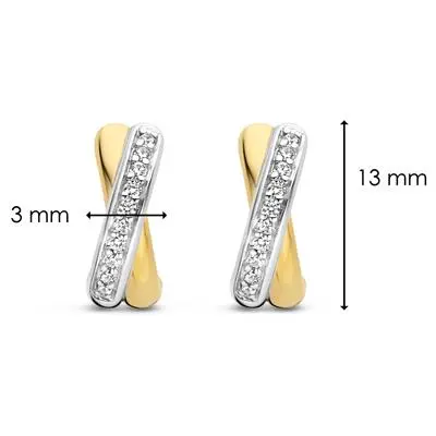 Dessa TI SENTO – Milano guldpläterade silverörhängen består av två fina cirklar som korsar varandra, varav den ena är guldpläterad och den andra är i silver, berikad med en pavé av handsatta vita zirkonstenar. Örhängena är gjorda av 925 sterling silver och pläterade med 18k guld. Bär dem med studs eller andra creol örhängen och skapa din egen kombination.