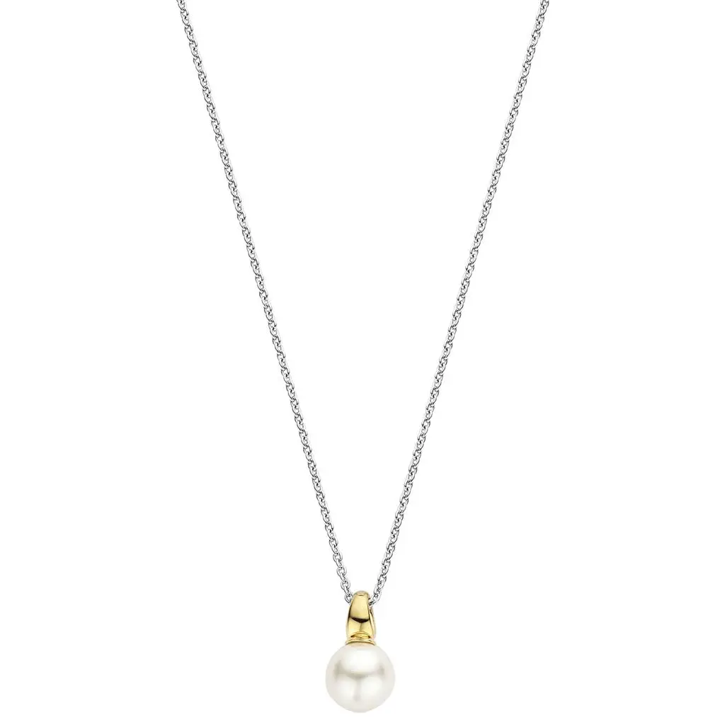 Detta TI SENTO guldpläterade halsband med pärla kombinerar tidlös skönhet med lyx.