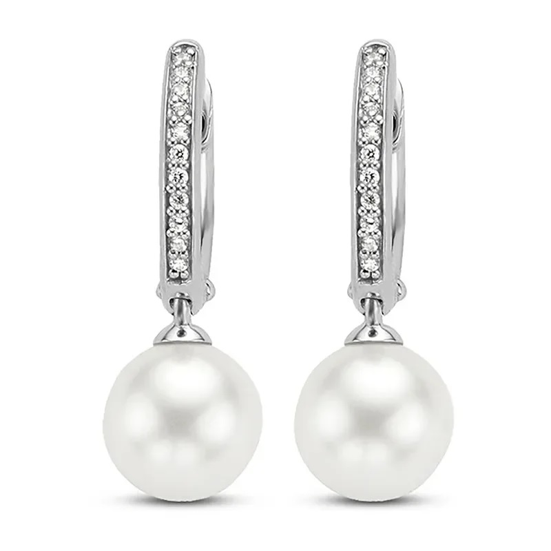 Dessa TI SENTO pärlörhängen är designade med en rad briljantslipade kubiska zirkoniastenar. 925 sterlingsilvret är behandlat med platina, vilket ger smycket extra hållbarhet och glans. Kombinera dem med andra pärlsmycken för en tidlös look.